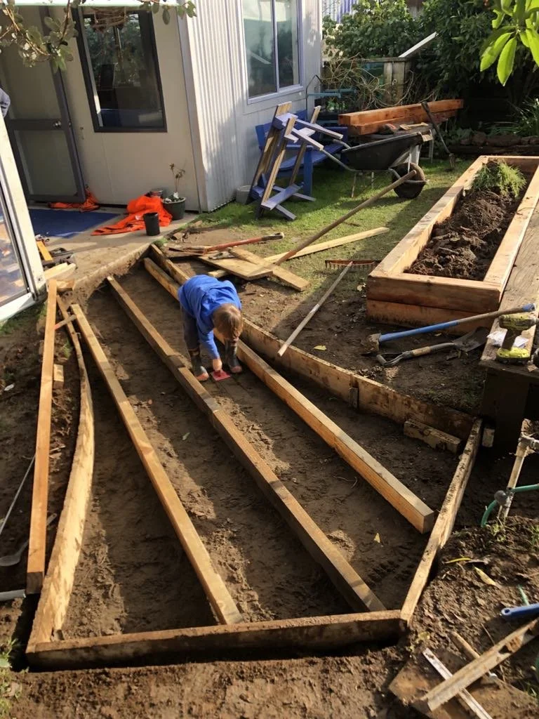 As keen gardeners, a big part of our vision is to develop a space that is both beautiful and functional. We want the garden to be a place where children can learn about growing food and connect with nature. You may have noticed some changes already, like the new pathway and outdoor upgrades. Scott had a former career as a fitter welder, as well as a wealth of knowledge about DIY that he’s gained over the years from working on projects with his dad, Neil. These skills have really come into their own as we make improvements to the environment.