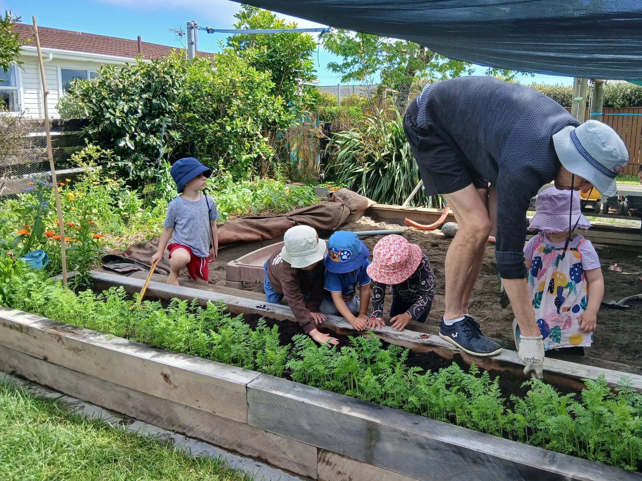 Scott’s mum Rhonda founded Manu Kindergarten back in 1992, and we feel very privileged to have taken over a thriving small business that has been part of the community for more than 30 years. With the kindergarten situated at the back of Rhonda and Neil’s property, we’ve been really fortunate to have them close at hand for support as we find our feet.